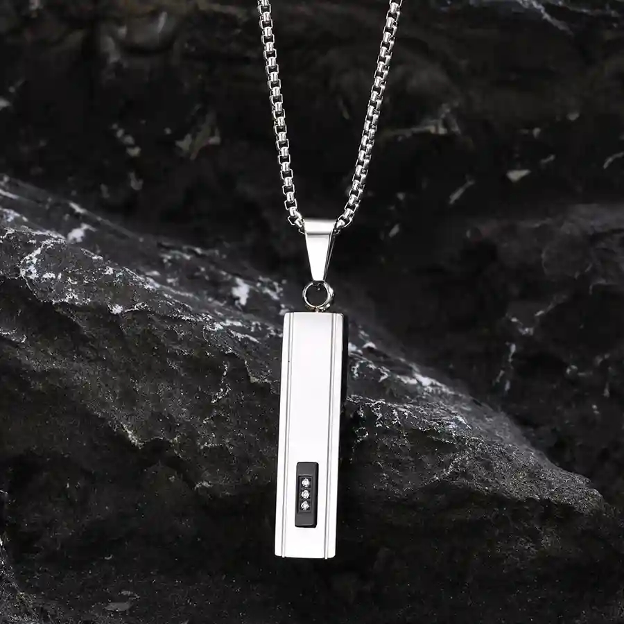 Herrsmycke i rostfritt stål med rektangulär bar pendant och CZ-detaljerHerrsmycke i rostfritt stål med rektangulär bar pendant och CZ-detaljerHerrsmycke i rostfritt stål med rektangulär bar pendant och CZ-detaljer
