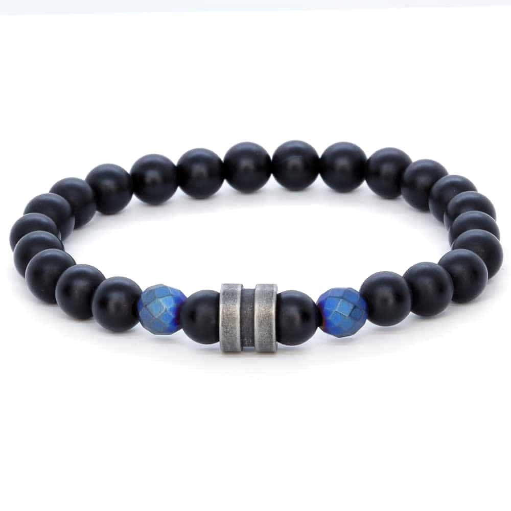 Blått ansiktsarmband med 8 mm pärlor på resår.