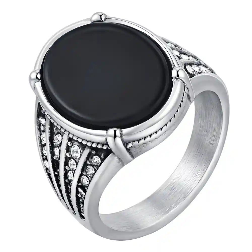 Black Agate Power Ring – Rostfritt Stål Herrring
