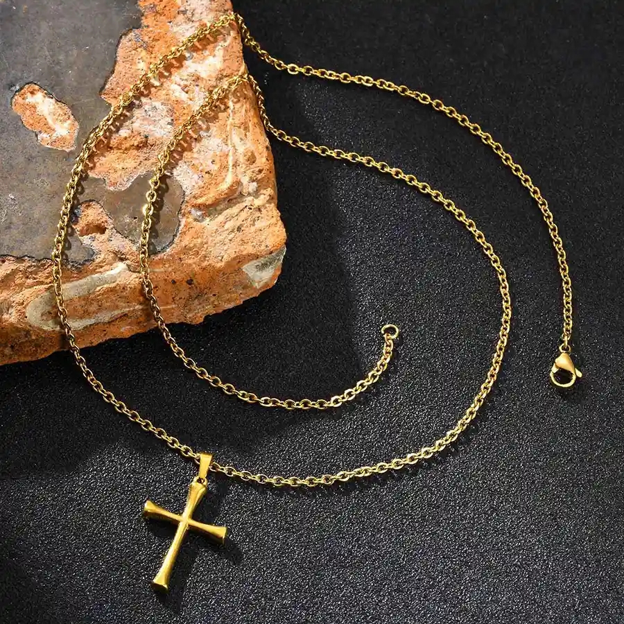 Golden Faith Cross Necklace är ett maskulint halsband i rostfritt stål med elegant guldfärgad finish.