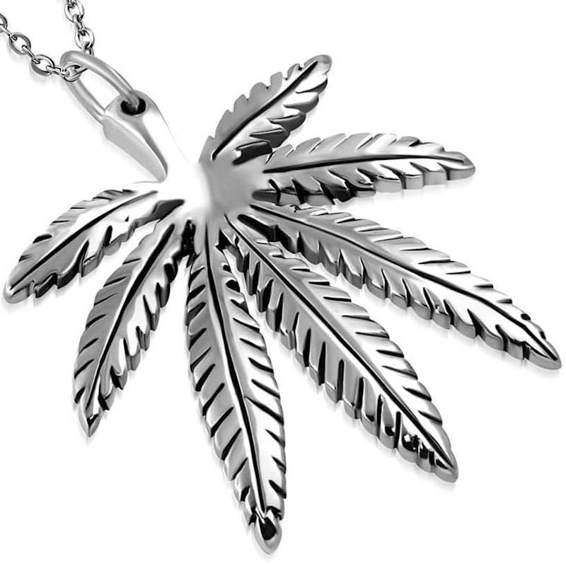 Halsband med rostfritt stål hänge. Design: Marijuana. Storlek Ø = 2,5 cm Inkluderar kedja av 60cm som kan förkortas.