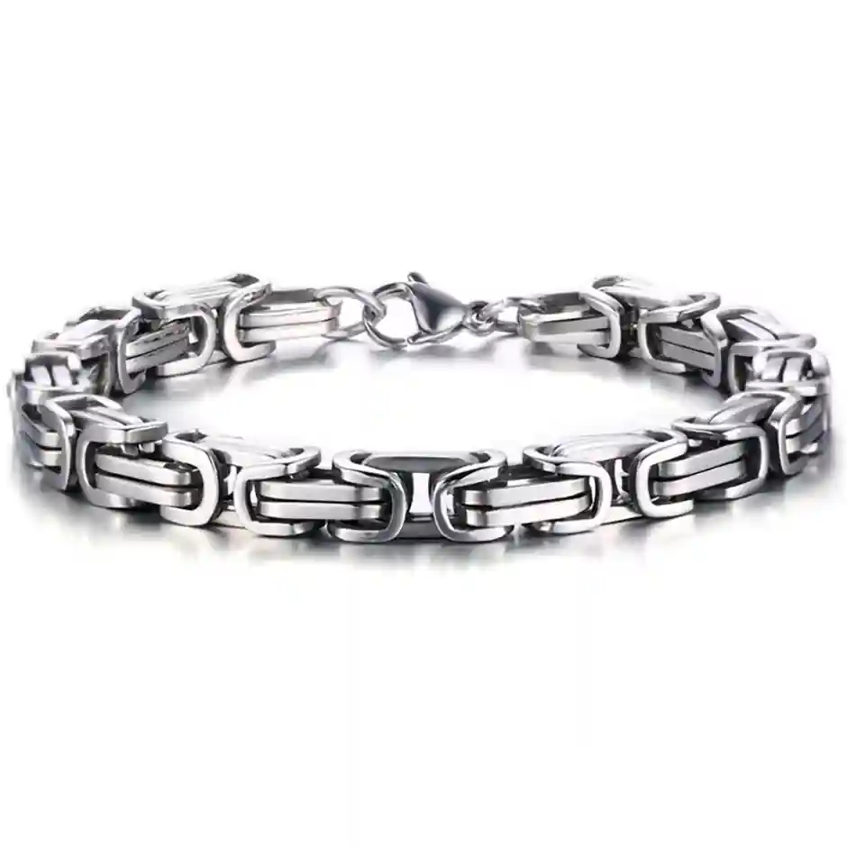 Kraftigt herrarmband i rostfritt stål som är designat för män som vill ha ett markant och maskulint uttryck. Armbandet är uppbyggt i en solid 8 mm bred länkdesign, som ger ett rått, industriellt utseende utan att kompromissa med komforten.
