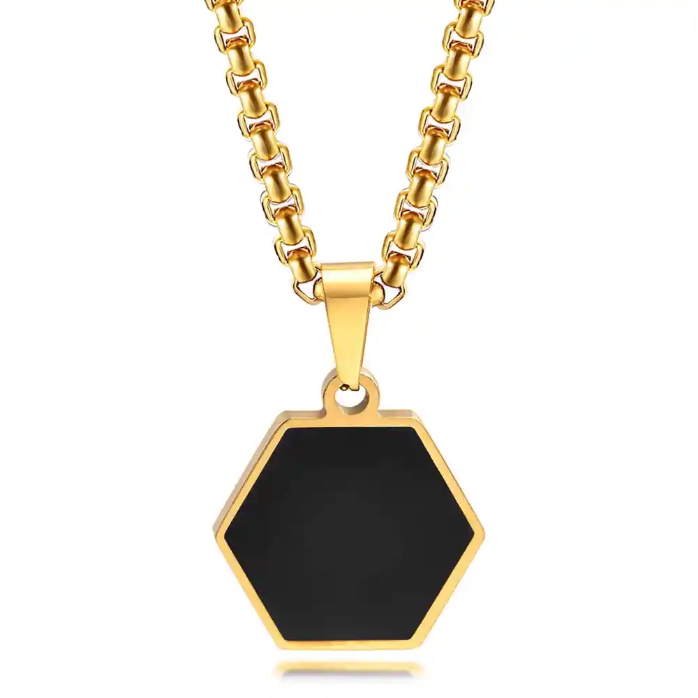 Herrhalsband Hexa Gold Black i rostfritt stål med svart sexkantigt förgyllt hänge