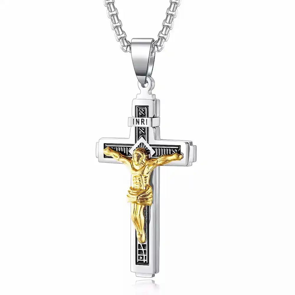 Solid rostfritt stål och guldpläterad jesus mäter 3 x 5,5 cm
