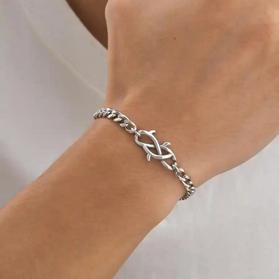 Tillverkat i slitstarkt stål som behåller glansen år efter år. Ett tidlöst herrsmycke som kombinerar styrka, tro och minimalistisk elegans.