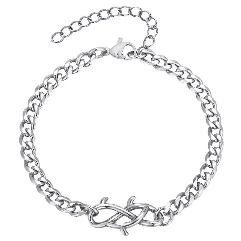 Ett maskulint och stilrent armband i rostfritt stål med modern länkdesign och elegant symbol i mitten.