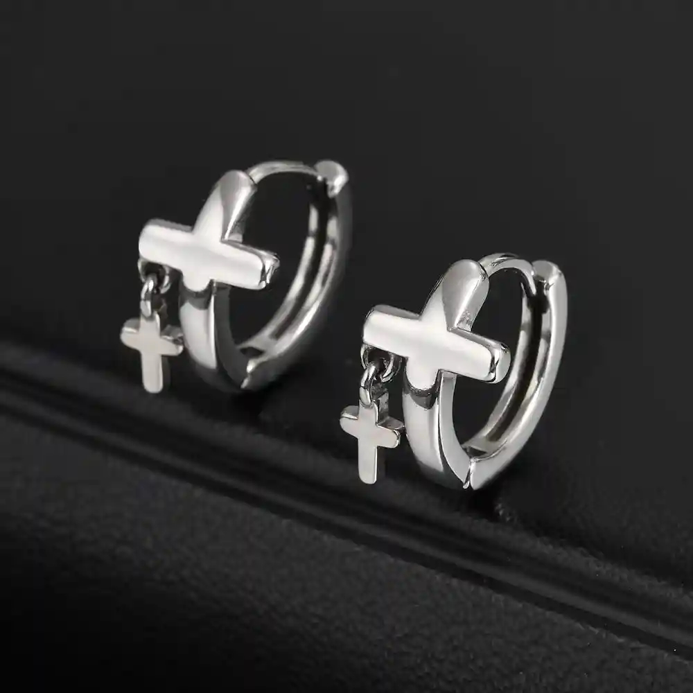 Herrörhänge i rostfritt stål med dubbelt korsdesignHerrörhänge i rostfritt stål med dubbelt korsdesign