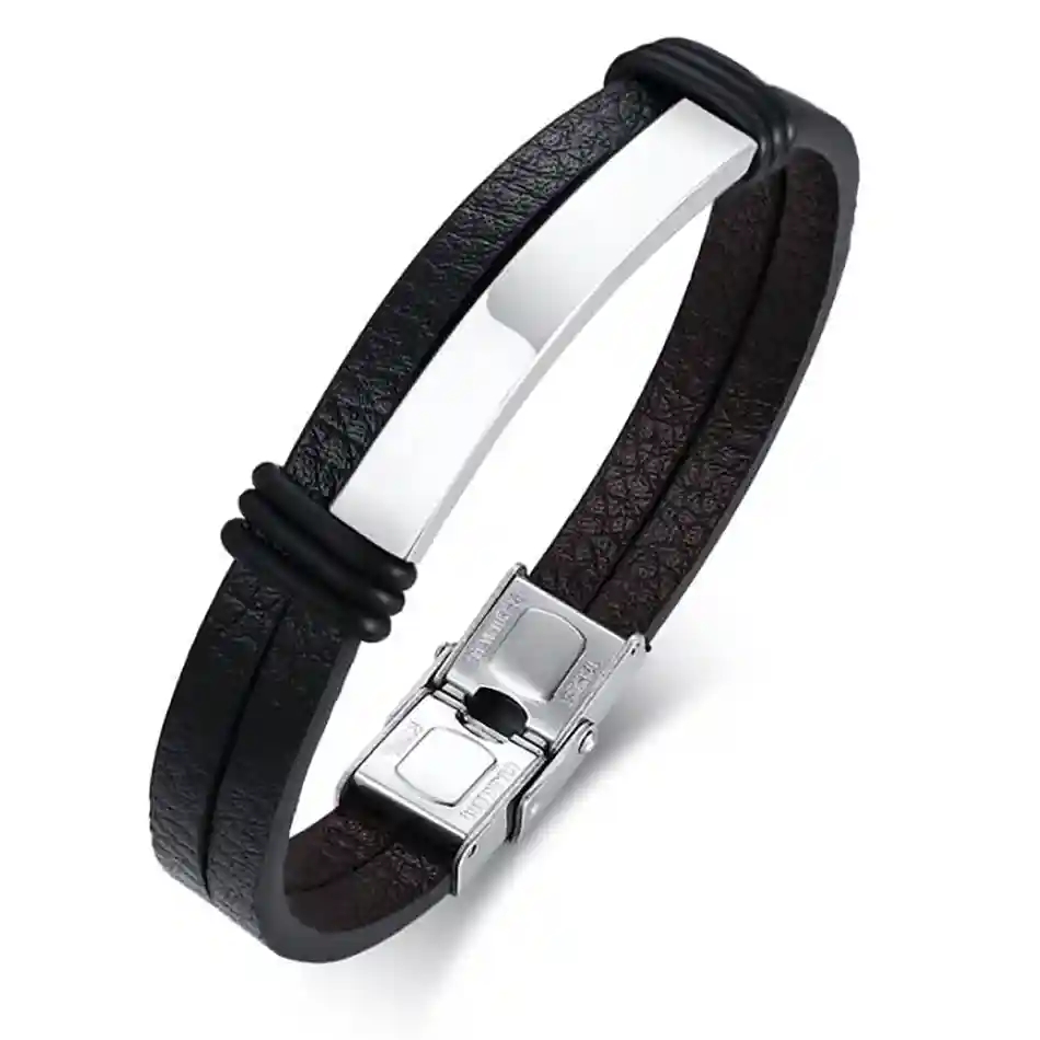 Ett tidlöst herrarmband i äkta läder och blankpolerat rostfritt stål, skapat för mannen som uppskattar enkelhet med stil. Armbandet kombinerar svart struktur-läder med en elegant stålpanel, som ger ett modernt och maskulint uttryck. Det solida magnetlåset gör det enkelt att ta på, samtidigt som det säkerställer perfekt passform.
