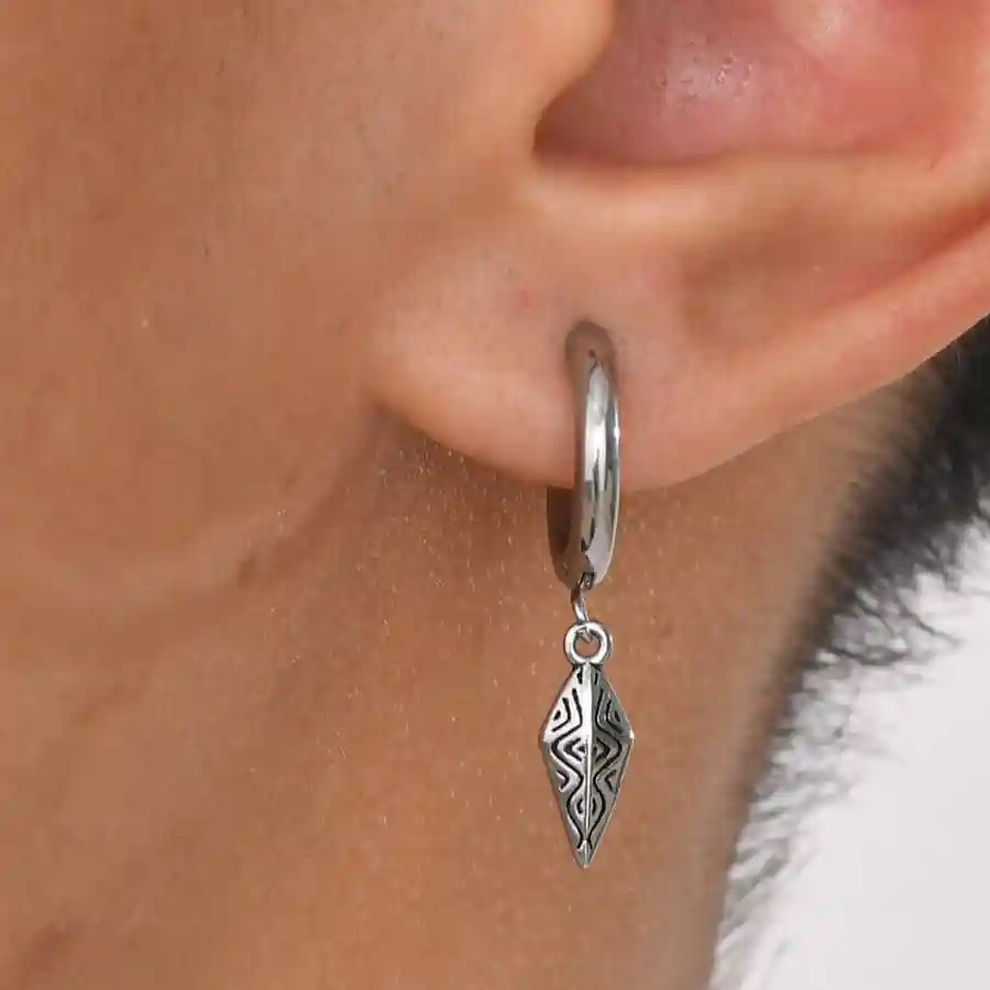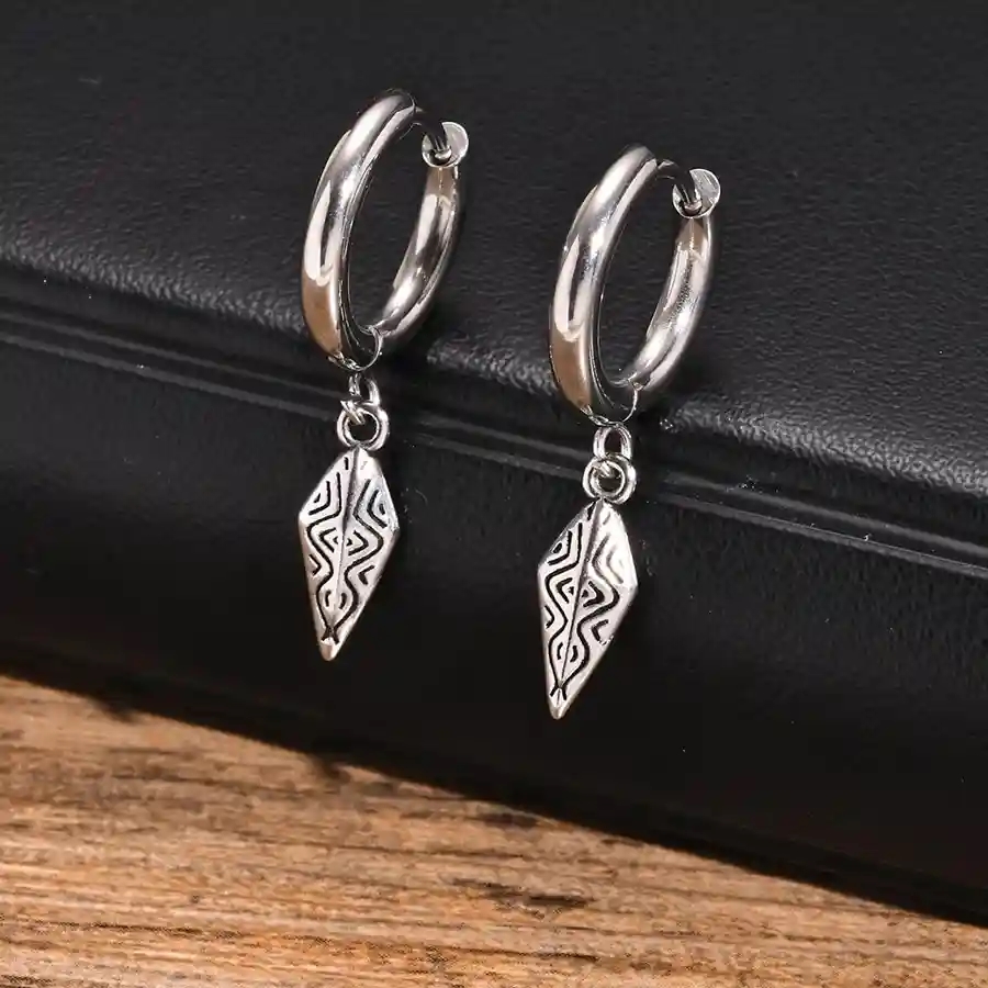 Framhäv din stil med Nordic Edge Hoop, ett rått och maskulint herrörhänge i rostfritt stål, designat med ett lätt hängande nordiskt inspirerat hänge. De rena linjerna och det symboliska mönstret ger ett skarpt, vikingaliknande uttryck, som fungerar både till vardagslooken och en mer kantig street-stil outfit.