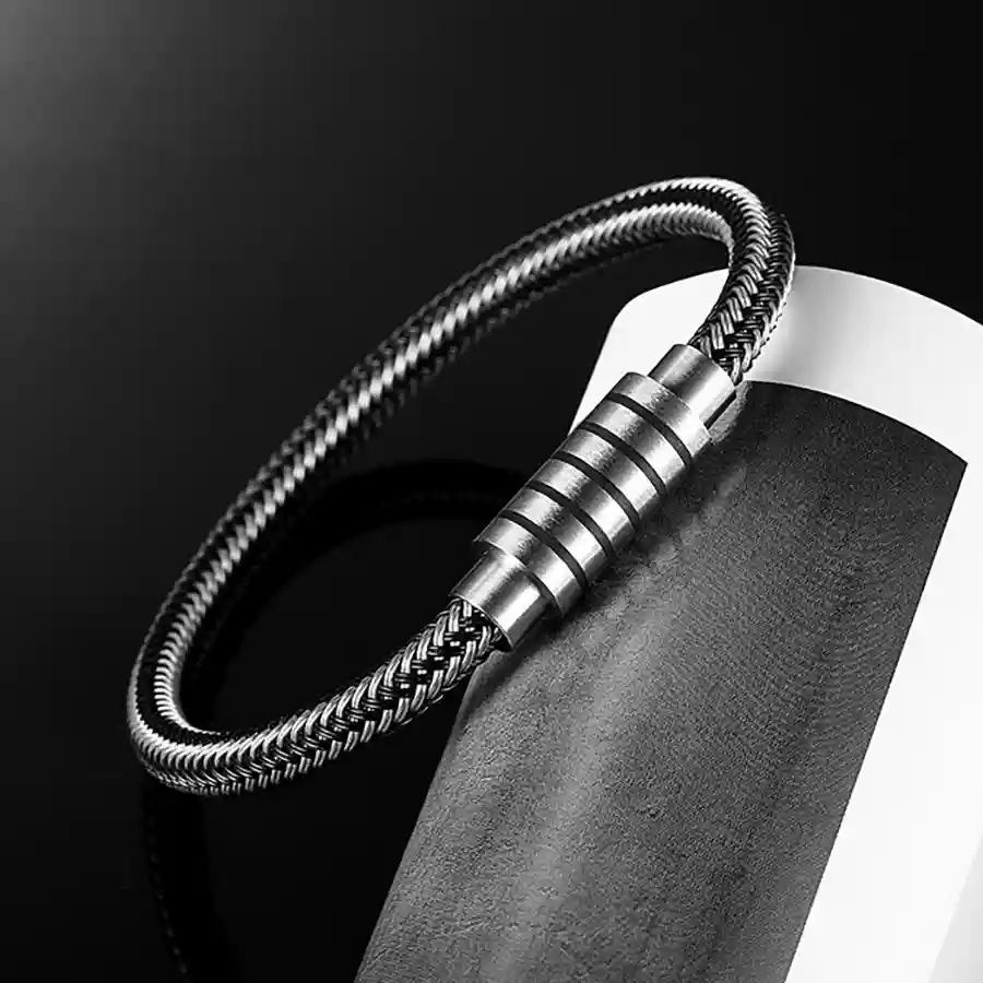 Pulse Steel kombinerar flätad stålwire med en elegant magnetlås, som gör armbandet både funktionellt och lätt att ta av och på.