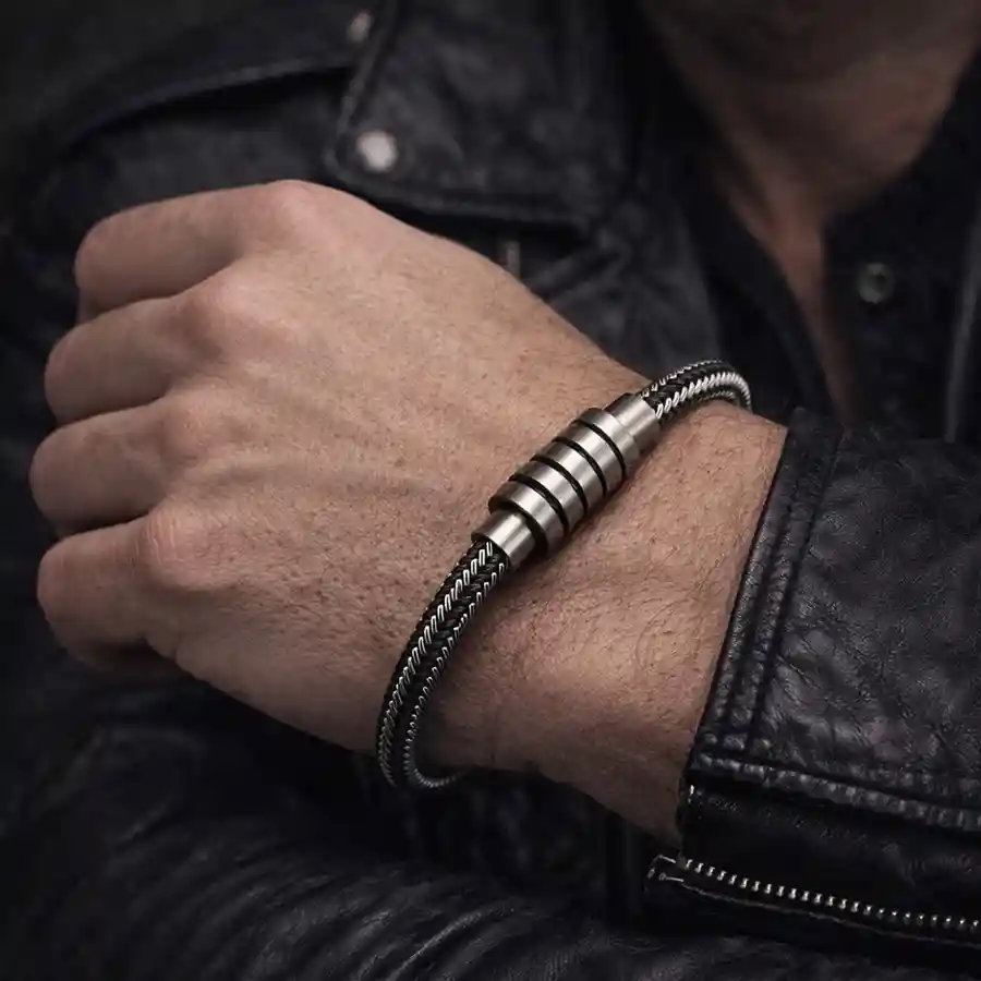 Ett modernt och maskulint herrarmband i rostfritt stål, designat för mannen med känsla för stil och styrka.